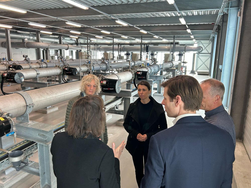 Op 3 april brachten Tanja de Jonge, wethouder in Dordrecht met o.a. Klimaat, Energie & Milieu in haar portefeuille, en Nanette van Ameijde, coördinator PFAS binnen de gemeente Dordrecht, een werkbezoek aan onze productielocatie Baanhoek. Hier maken we drinkwater voor de inwoners van Dordrecht en het oostelijk deel van de Hoeksche Waard. De bron voor dit drinkwater is vooral Maaswater dat vanuit onze spaarbekkens in de Brabantse Biesbosch naar Baanhoek wordt getransporteerd.