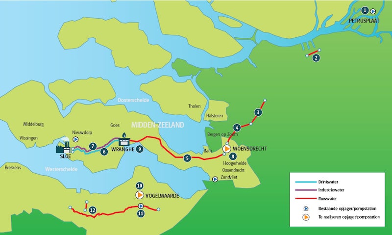 De nieuwe watertransportleidingen zijn voorzien tussen het knooppunt Markiezaat bij Woensdrecht en het Sloegebied in Vlissingen-Oost. Het gaat om een tracé met een totale lengte van ongeveer 45 kilometer waarin ongeveer 70 kilometer nieuwe stalen watertransportleidingen worden aangelegd. Ongeveer 24 (van de 70) kilometer wordt door middel van (26) horizontaal gestuurde boringen aangelegd en de rest via open ontgravingen. Voor het tracé van de Wranghe tot Vlissingen-Oost worden zowel een drinkwatertransportleiding (richting bestaand pompstation Nieuwdorp) als een industriewatertransportleiding aangelegd. Beide leidingen hebben een diameter van 700mm. In het tracé van de Wranghe tot de Oesterdam wordt een stalen watertransportleiding van 900mm aangelegd. Tussen Middenhof en het kruispunt Oude Rijksweg/Rillandseweg nabij Rilland / Krabbendijke wordt tevens een bestaande watertransportleiding vervangen voor een stalen watertransportleiding van 900mm. In het tracé tussen de Oesterdam en knooppunt Markiezaat worden twee stalen watertransportleidingen van 800mm aangelegd.